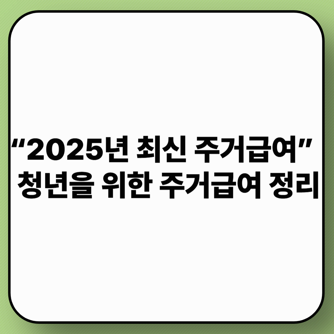 📌 2025년 기준 '청년 주거급여 특별지원' 제도를 활용하면
